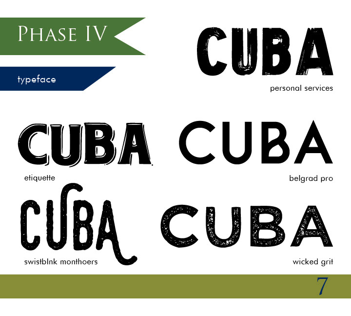 This logo was created after extensive research on the culture and history of Cuba. Upon learning more about the economy, I found that crops, primarily tobacco, are crucial for the country. This facet of Cuban culture is rich and often forgotten about among the beautiful beaches and historical towns. After exploring different thoughts, I landed on the leaves which I found to be relevant not only to the agricultural element of Cuba but also as a symbol of hope and growth for its people.